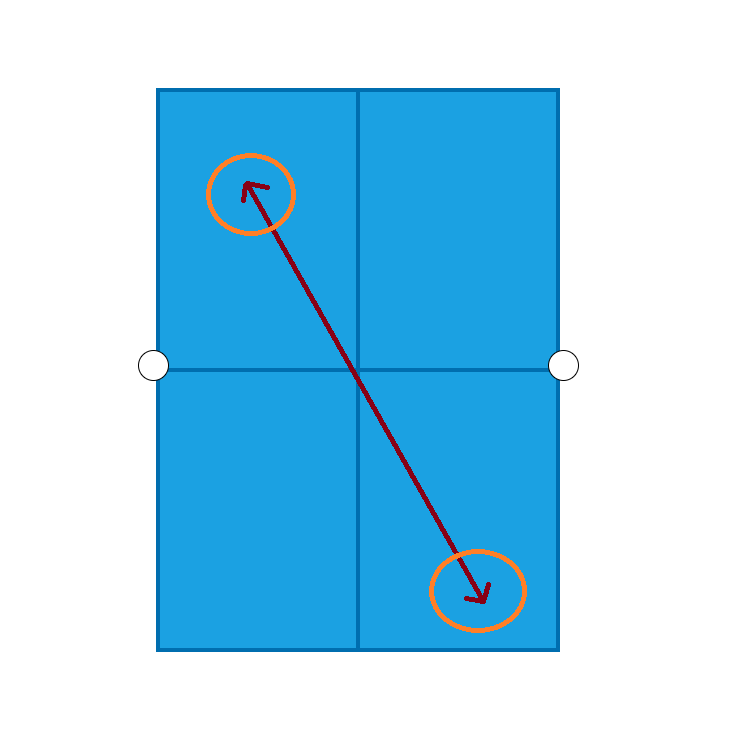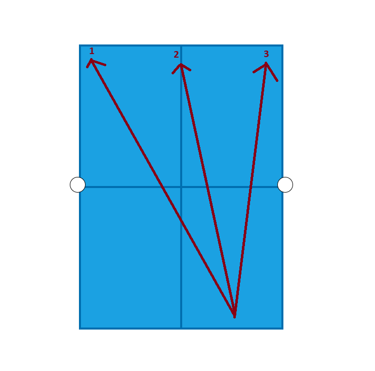 En tant que distributeur, viser le coin gauche, puis le centre et enfin le coin droit. Le receveur va renvoyer la balle toujours sur le coup droit du distributeur.